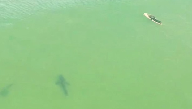 Dat lukte, echter kwam er ook wat anders in beeld. In eerste instantie filmt McCaslin met zijn drone een mooi beeld van een zonnige stranddag met een zee vol surfers, echter doemt dan plotseling een haai op. Volgens de piloot betrof het een witte haai of mensenhaai: "As I got closer, I see it's not only a shark, but looks to be a great white". Hierna haalt hij zijn drone terug en laat de beelden zien aan de lifeguard.